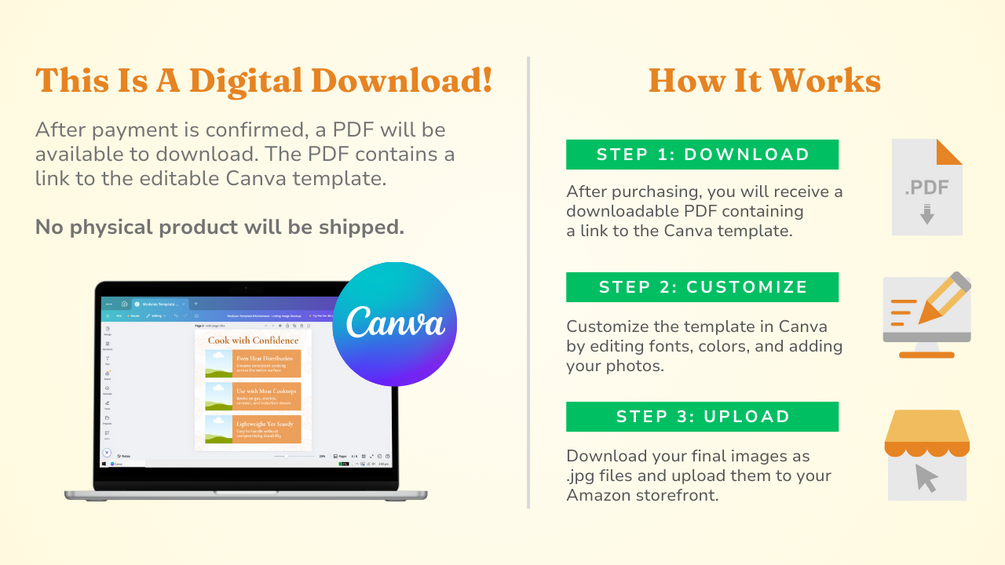 ▸ Save time and elevate your product listing with just a few clicks in Canva—no graphic design experience needed!